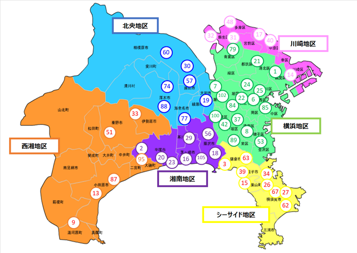 神奈川県内の各地で53ヵ団が活動しています。